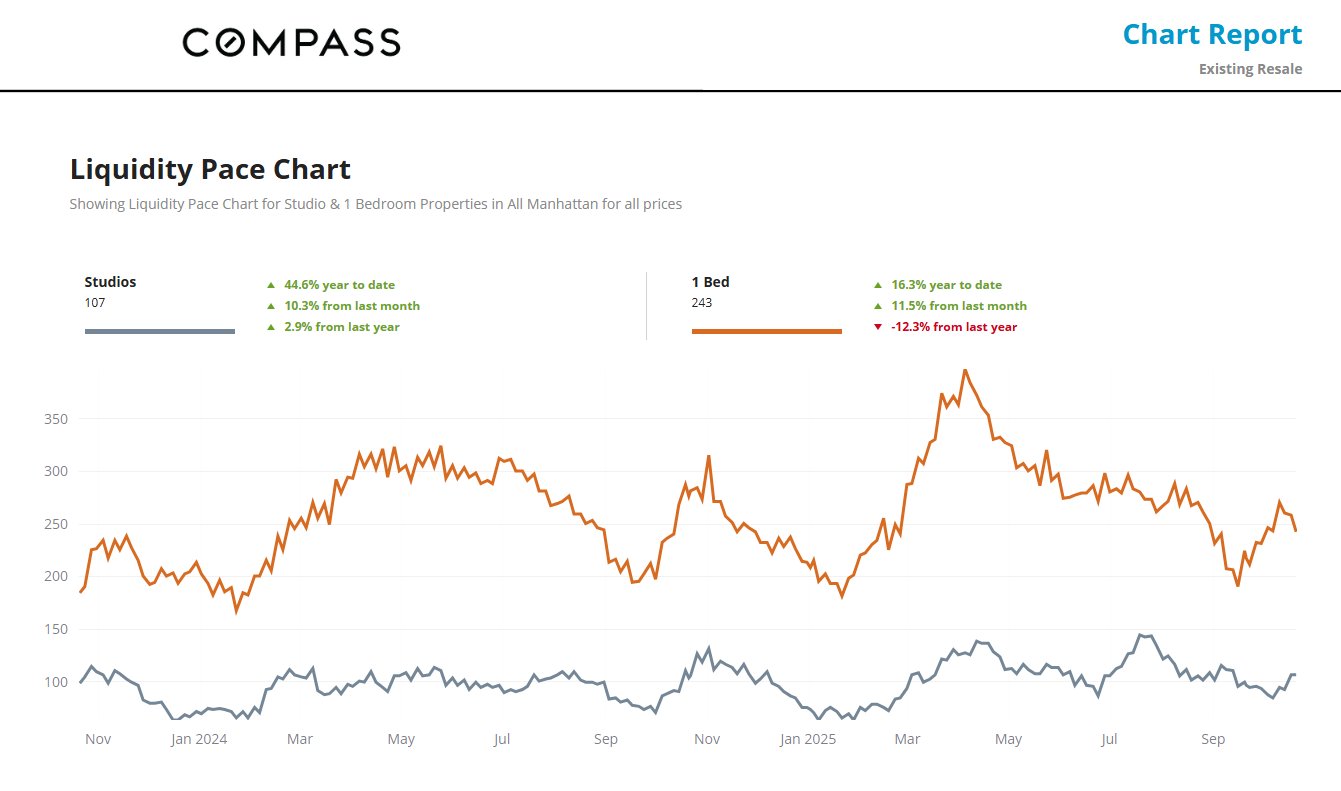 The latest UrbanDigs data says it all. Over the last 30 days, Manhattan saw 1,461 new listings, below the seasonal average of 1,525. Contract activity, meanwhile, came in around 854, up slightly from September but still shy of the 910 benchmark for this time of year.
