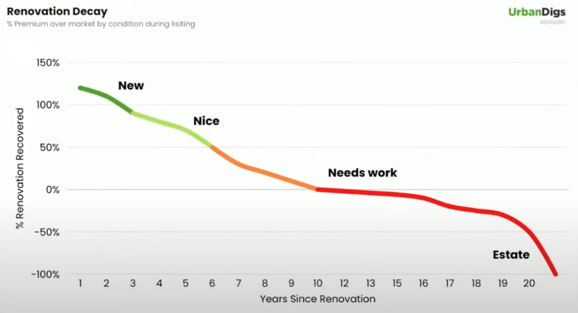 For sellers, that means one thing: if your renovation is older than 10 years, price like it’s unrenovated. Buyers aren’t paying for your memories—they’re budgeting for their contractors.