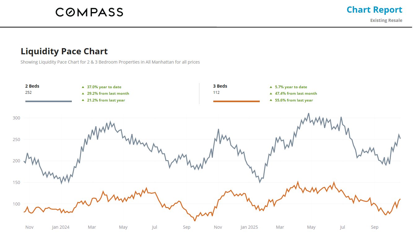 UrbanDigs’ liquidity pace chart shows it clearly—two- and three-bedrooms are outperforming, while studios and one-beds lag. Larger homes with functional layouts are still moving, while compact starter units feel stagnant.