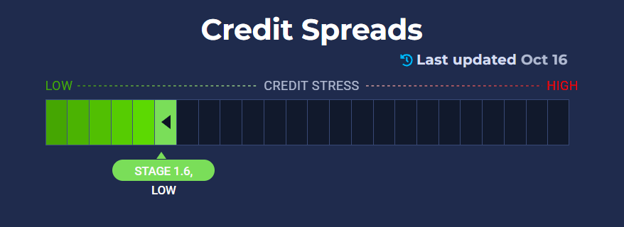Credit spreads (the gap between corporate bond yields and U.S. Treasuries) are the financial world’s early-warning system. When they widen, stress is rising. When they narrow, investors are relaxed.
