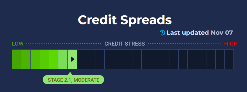 Still, context matters. Even at these levels, spreads remain historically narrow, indicating calm credit conditions and steady liquidity. In other words, the financial plumbing is still working fine.