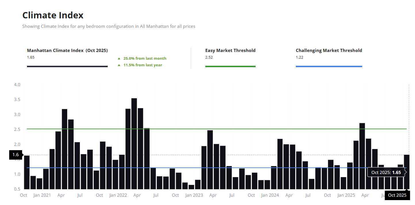 Manhattan’s late-2025 market doesn’t fit neatly into the boom-or-bust narrative. Supply is light, contracts are stable, and credit conditions are calm. Buyers are cautious but present; sellers are realistic but not desperate.