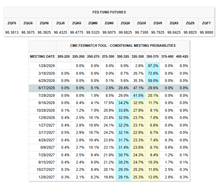 Markets are currently pricing in one possible rate cut around June 2026, with another maybe in October. Even June isn’t guaranteed. It’s close to a coin flip.