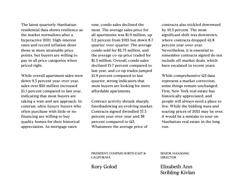 While the bidding wars and soaring prices of 2021 may be over, it would be a mistake to sour on Manhattan real estate in the long run. New York real estate has historically appreciated and people will always need a place to live. For savvy investors, now may be a good time to get back into the market.