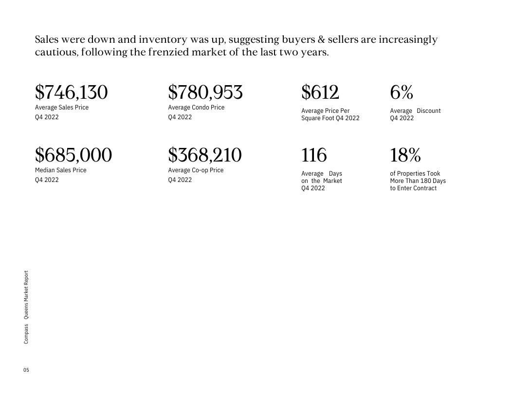 Despite the overall increase in inventory across the borough, this has not translated to more sales or price declines, suggesting that buyers and sellers are becoming increasingly cautious in light of the frenzied market of the last two years. Expect buyers who were previously looking at Manhattan and Brooklyn to consider Queens in 2023 due to its affordability and rich diversity.