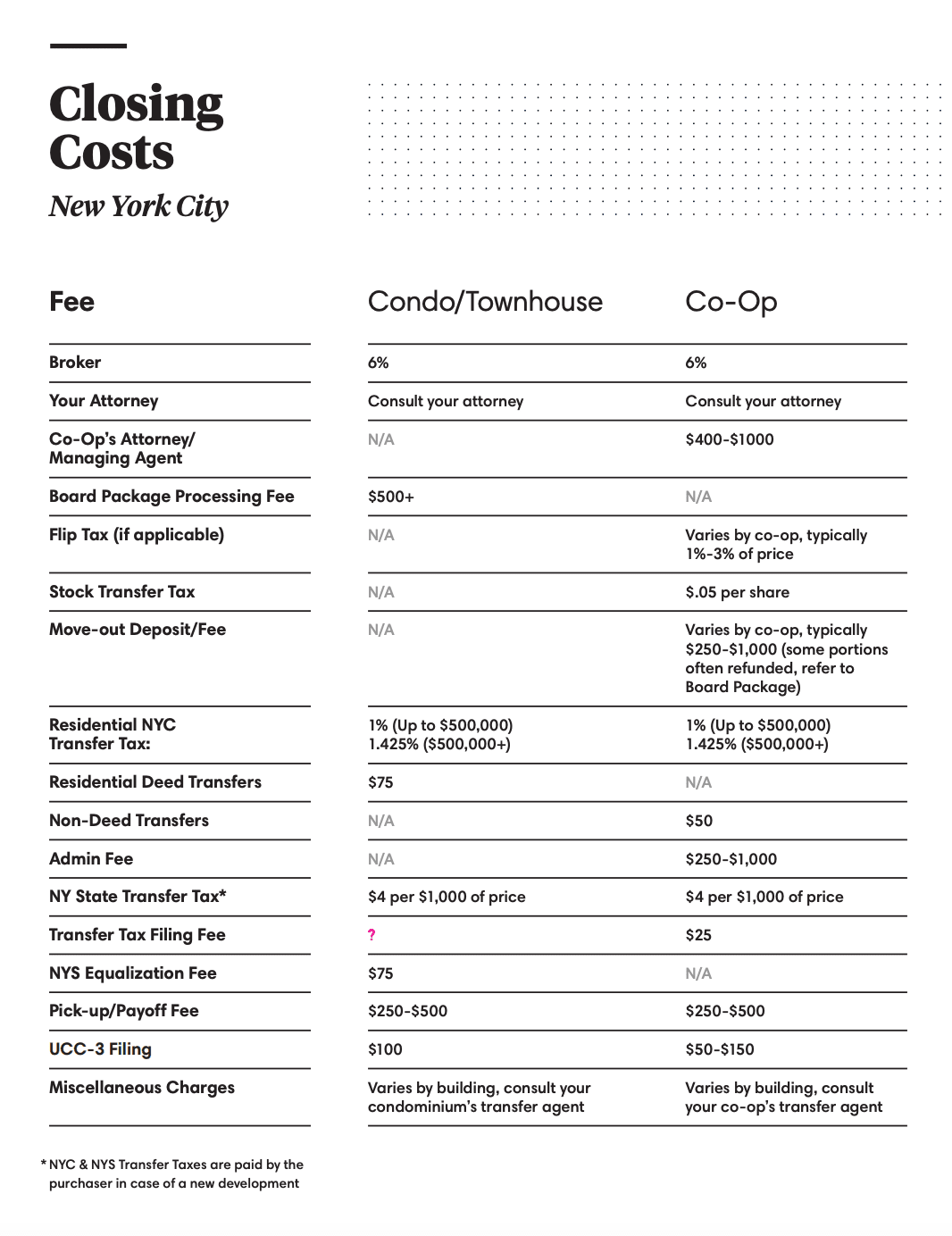 Selling a home in NYC can be an expensive process, but understanding the closing costs can help you prepare for the expenses. Transfer taxes, attorney fees, and broker commission are the three largest expenses you'll face as a seller. By knowing what to expect, you can avoid any surprises and ensure a smooth transaction.