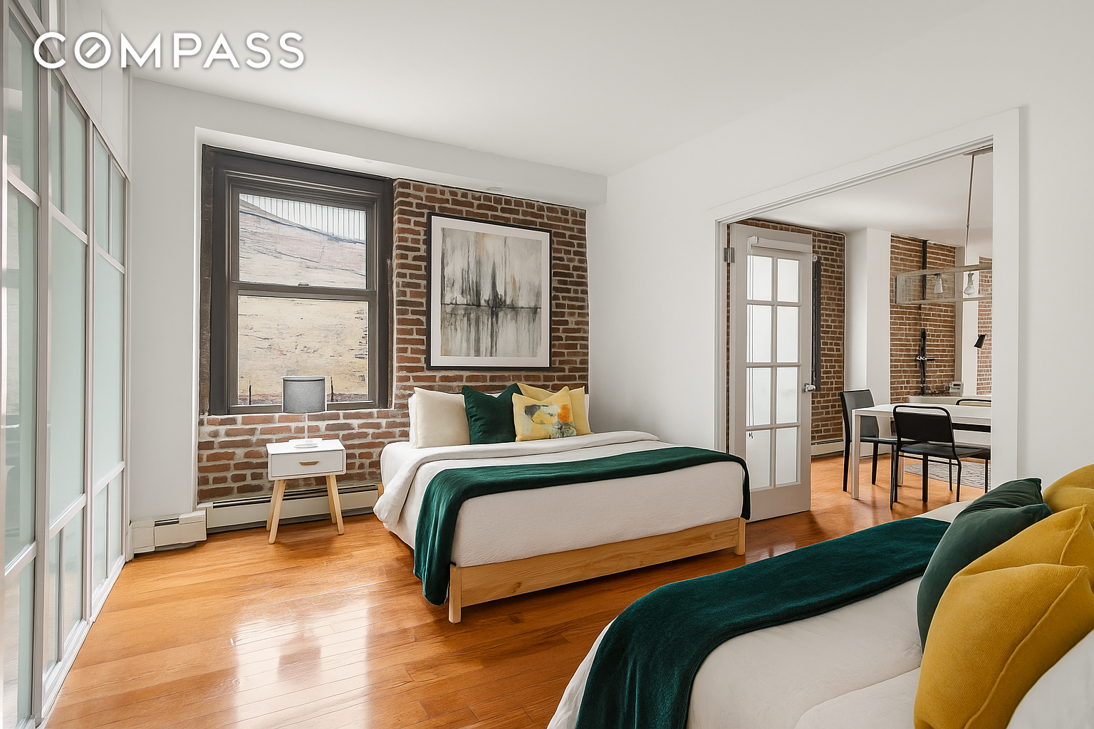 Residence 6B at The Walton Condominium boasts an expansive and open floor plan and in-unit washer and dryer. With tons of light, exposed brick walls, hardwood floors, and ample room for living and dining areas are only a few of the reasons this apartment is your best bet for your next home. Entertaining options and choices are endless, from special occasion, intimate gatherings to festive dinners with family and friends.