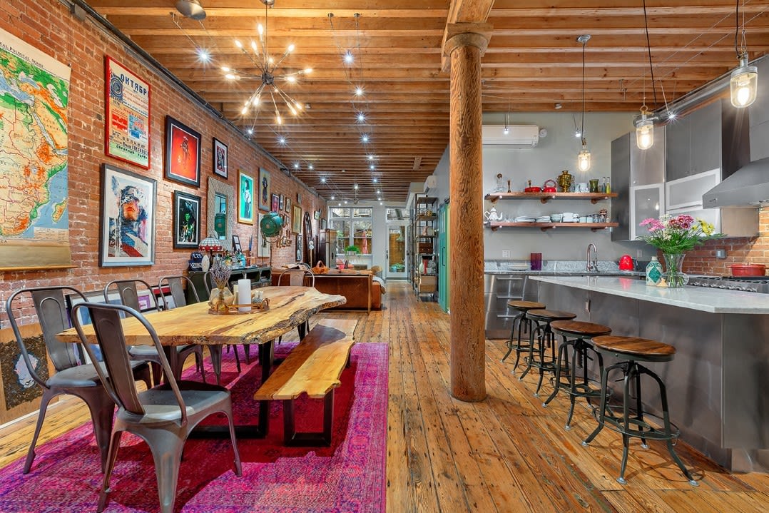 You'll find this incredible home at the intersection of industrial chic and warmth. Where drama meets comfort. Where romance meets functionality. And where high style combines with character. How is this possible??? How can a home be both open and huge (1,500 interior sq ft and 500 outdoors), yet at the same time intimate and charming? Magic!