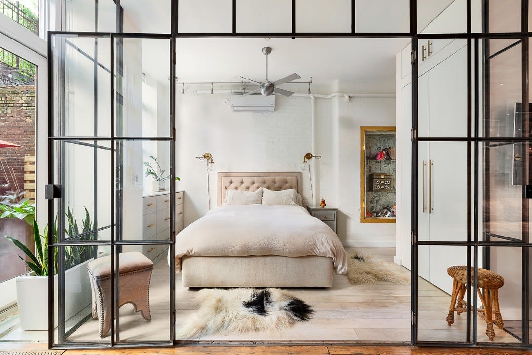 You've heard the expression, "Dress to impress"? Well, we recommend that you "live to impress". And this property makes it easy. There are 12 ft beamed ceilings, and 10 ft tall windows opening to a private bluestone patio which has room for grilling, dining and chilling. The enormous open kitchen is the focal point of the home's interior, where guests will congregate around the white marble island before moving to the dining room, or the living room, or the study. Both of the bathrooms are jaw-dropping gorgeous; the principal bath offers a rain head shower, a stainless vanity with brass fixtures and faucet, custom lighting and a frosted glass pocket door. The guest bath features a cast iron tub and marble tile, an oversized linen closet with laundry hampers and the washer/ dryer. This home can be rented partially furnished.