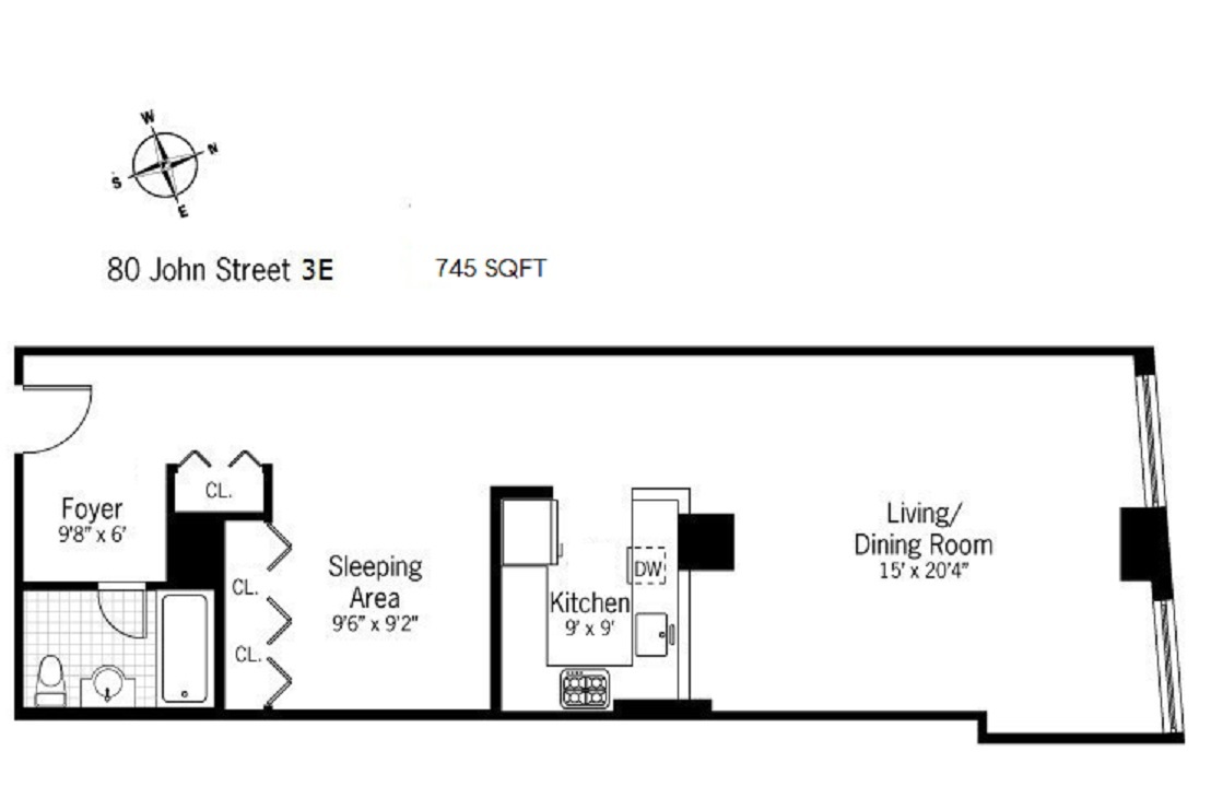 You'll instantly feel as if you've arrived "home" each time you return to this beautifully renovated loft style condo in the heart of the Financial District. Two oversized windows and the 10'8" beamed ceilings provide character and charm, and make this home feel extra spacious. You never imagined that 745 sq ft could be so large! The top-of-the-line open kitchen features granite countertops, Sub Zero refrigerator, Bosch dishwasher, Bosch oven and cooktop, as well as a GE Profile microwave. Cherry wood cabinets complete the pretty kitchen picture and provide more-than-ample storage. 2 Washers and Vented Dryers are right across the hall. The South Star is an Art Deco pre-war condominium with 24/7 concierge. live in Super, on site gym (extra fee) and garage (extra fee). . The Fulton Street subway entrance and 24 hour supermarket are both across the street. Convenience and destination shopping have arrived in FiDi with the opening of Whole Foods, Eataly, the Tin Building and so much more. To find out more info on why the Financial District is booming, join FiDi Fan Page on Facebook and Instagram!