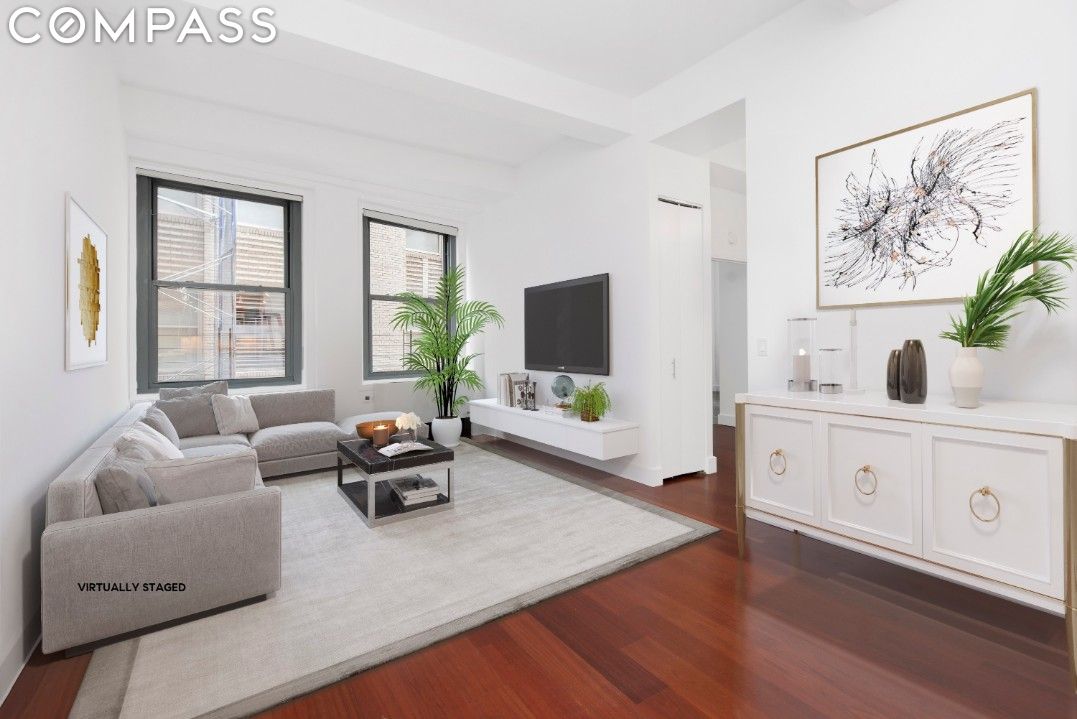 As a prewar loft conversion, there are dramatically high 10' 8" beamed ceilings which, combined with the large windows, make this 1,412 sf home seem even larger. The Open Kitchen includes granite countertops, a Sub Zero refrigerator, Bosch dishwasher, oven, cook-top and a brand new washer/dryer! All three bedrooms are generously sized and contain lots of storage as well. The building offers 24/7 Concierge, great staff, live-in super, a gym (extra fee) and garage (extra fee). All this, plus a neighborhood that is rapidly transforming into New York's most convenient and hippest 24/7 community. Pets permitted on a case-by-case basis. For more neighborhood info check out my FiDi Fan Page on Facebook. NO FLEX WALLS ALLOWED.